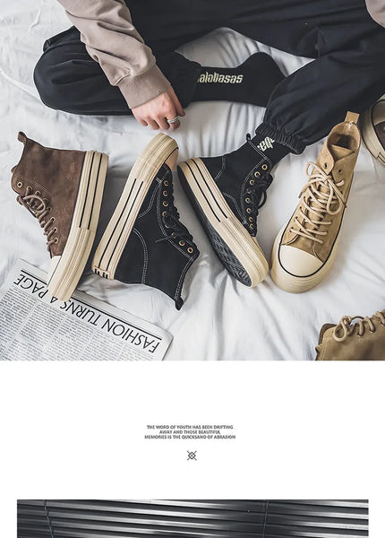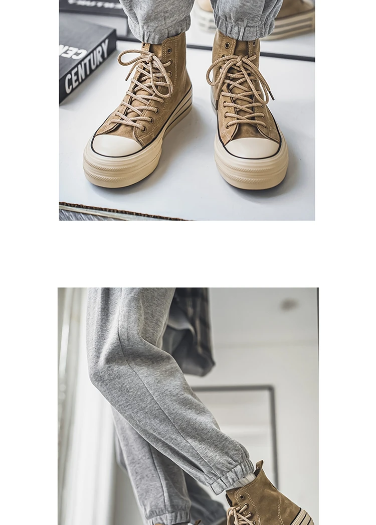 Classic Fashion Skateboarding Shoes for Men Women Comfy Suede Leather High Top Sneakers Men Height-increasing Platform Sneakers
