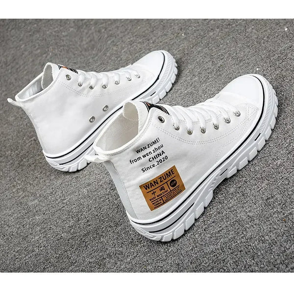 Classics Men's Shoes 2025 Fashion High Top Canvas Sneakers Platform Casual Shoes Man Lace-up Flats Men Non-slip Vulcanize Shoes