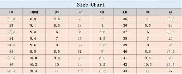 size_info: {"sizeInfoList":[{"length":{"cm":"22.5","inch":"8.86"},"size":"35","vid":-1},{"length":{"cm":"23","inch":"9.06"},"size":"36","vid":-2},{"length":{"cm":"23.5","inch":"9.25"},"size":"37","vid":-3},{"length":{"cm":"24","inch":"9.45"},"size":"38","vid":-4},{"length":{"cm":"24.5","inch":"9.65"},"size":"39","vid":-5},{"length":{"cm":"25","inch":"9.84"},"size":"40","vid":-6},{"length":{"cm":"25.5","inch":"10.04"},"size":"41","vid":-7},{"length":{"cm":"26","inch":"10.24"},"size":"42","vid":-8},{"length":{"cm":"26.5","inch":"10.43"},"size":"43","vid":-9}]}